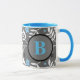 Trendig Blue och Grått Blommigt Monogram Mugg