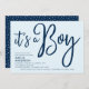 Fira den blivande mamma eller de blivande föräldrarna med den här snyggten Baby Shower-inbjudan som visar ord "Det är en pojke" i trendigets blå penselskript mot ljusblå bakgrund. Kortet har en blå och vit spräcklig baksida mönster. Anpassa den genom att ersätta platshållartexten. Om du vill ha fler alternativ som att ändra teckensnittet och det är storlekt/färg eller mellanrummet mellan brev klickar du på knappen "Anpassa". *Observera att Zazzle Watermark som visas i zoomförhandsvisningen INTE visas på den färdiga tryckta produkten. © Rosewood and Citrus