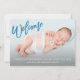 Trendig Blue Welcome Script med Photo Baby Birth Meddelande