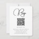 Det här moderna svarskortet i bröllop har ett ställe för din QR-kod så att gästerna enkelt kan osa på din bröllop webbplats. Framsidan har en enkel och ren svartvit design med trendigets skrivstil, skrivstil, typografi och baksidan är ett fullt.