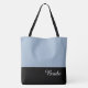 Denna vackra, trendmedvetna handväskor visar ordet "brud" i vit textfärg på svart med den övre handväskan i antikk blå. Har gott om plats för personlig text. Grafik och text finns på båda sidor av denna toteväska. Svart handtag. Anpassa ytterligare eller köp som visad.
