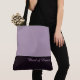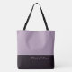 Denna underbara, trendiga taska visar orden "Maid of Honor" i vit textfärg över den djupaste, mörka, rökiga purpur-amethyst med den övre delen av taskan i anpassad Sugared Plum. Det finns gott om utrymme för personlig text. Grafik och text finns på båda sidor av taskan. Svart handtag. Anpassa ytterligare eller köp som visad.