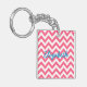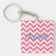 Hip och det moderna Trendiget Chevron Acrylic Keychain. Den här nyckelkedjan för coola har en chevron zig zag mönster i rosa och vitt. Lägg till text till den här designen till ge genom att trycka på den personligen.