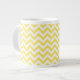 Hip och det moderna Trendiget Chevron Jumbo Mugg. Coolan mugg har en schevron zig zag mönster i gult och vitt. Lägg till text till den här designen till ge genom att trycka på den personligen.