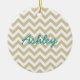 Hip och det moderna Trendiget Chevron Ornament. Den här coolan har ett chevron zig zag mönster i beige och vitt. Lägg till text till den här designen till ge genom att trycka på den personligen.