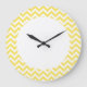 Hip och det moderna Trendiget Chevron Wall Clock. Den här coolan har en chevron zig zag mönster i gult och vitt. Lägg till text till den här designen till ge genom att trycka på den personligen.