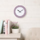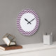 Hip och det moderna Trendiget Chevron Wall Clock. Den här coolan har en chevron zig zag mönster i lila och vitt. Lägg till text till den här designen till ge genom att trycka på den personligen.