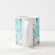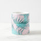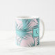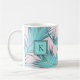 En färsk och trendig tropisk mönster vid handflatan i coola isig turkosa blått över rosa lägger öarnas tillgivenhet till denna anpassningsbar kaffe mugg. En matchande dubbla ram omger ditt monogram i mitten av designen på båda sidor av mugg. Anpassa med önskat monogram eller annan text.