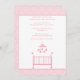 Denna 5x7 baby shower inbjudan har en söt rosa damaskus kant på toppen och botten. I mitten finns en vit bakgrund med en rosa spjälsäng och en rosa mobil som hänger ovanför. Du kan enkelt anpassa din festinformation. Cocoa Studio