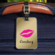 Trendigets elegant-anpassade-bagagemärkesdesign med FAUX guld bakgrund och rosa läppar ikon.