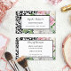 Erbjud dina tjänster som en licensierad kosmetolog med dessa affärskort för kosmetologi för snyggt med trendig svartvit leopard- och bakgrunden till blommigten för rosa. Anpassa genom att lägga till namn i makeup-artist och kontaktinformation.