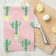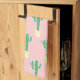 Trendig söt krukkaktus paternerad kökshandduk i rosa.