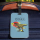 En vild öppnar mundinosaurier med vassa raktänder som håller ett svärd i hans lilla händer och väntar på strid. Perfekt för alla dinosaurier-älskande barn. Kan anpassas ovanpå med en namn för att göra den unik för dig.