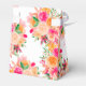 Modern flickaktig djärv blommande vattenfärg trendig bröllopsdusch tack favorittaska med ljusa orange, persika, rosa och gröna blommor bukett och elegant script stil