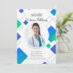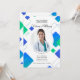 En inbjudan till examensfest med ett runt fönster för foton och en trendig, blå och grön abstrakt design mot vit bakgrund. (Foto skapat av nensuria - www.freepik.com). (Vektor skapad av freepik - www.freepik.com). Kortet är lätt att anpassa med din egen text, typsnitt, typsnittsfärg och pappersform. Inte exakt vad du söker? Alla våra produkter kan utformas enligt dina önskemål utan extra kostnad. Kontakta oss helt enkelt på askcottonlamb@gmail.com. Koordinerade produkter finns tillgängliga: Fråga oss!