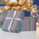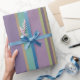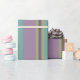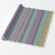 En söt strimlade mönster med rand av olika storlek i muterade plommonskuggor, oliv grönt, guld och teal.