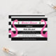 Roligt rosa flamingos accentuerar trendigets Inbjudningskort för möhippan mot en svart och vit strimlad bakgrund, skapar perfekten för en sommar-BBQ, luau, samlas vid bassäng eller flamingo-temahändelsen. Detta skulle också vara perfekt samordnat med giftermål-, tropiska, karibiska, hawaiiska eller strandbröllop. Ytterligare matchande objekt finns i Trendiget Flamingo Bröllop Collection. Om du behöver hjälp med att anpassa den här inbjudan eller om du behöver ytterligare objekt kontaktar du oss på prettyfancyinvites@gmail.com med din begäran.
