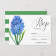 Trendig Rustic stil bröllopsinbjudningar OSA med blåblommor och vit och grönt strimlad mönster på kortets baksida. Dessa inbjudan är perfekter för en land-, bondgård-, trädgårds-, party- eller barnyard- eller stil-bröllopsfest. Den här designen är även tillgänglig för andra händelser. Kontakta oss via butiken om du vill ha anpassningsbar