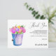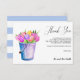 Trendig rustic stil Bröllop-informationskort med en hink fullt av tulpaner och blommor och vit och blå stripe mönster på baksidan av kortet. Chic botaniskt tackkort, låt er uttrycka er tacksamhet till gästerna i bröllop i elegant stil. Anpassa insidan med ett förtryckt anpassningsbar och namnteckning Dessa inbjudan är perfekt för en möhippa i land, bondgård, trädgård i party eller barnyard eller stil. Den här designen är även tillgänglig för andra händelser. Om du vill ha anpassningsbar kontaktar du oss genom butiken Det här objektet ingår i en samling. Besök vår butik