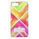 Färgfull vattenfärgsgeometrisk schevron rand fluorescerande färg iPhone 7 fodral. Trendigets utformning är inriktad på det pulserande fluorescerande färg och den vackra vattenfärgeffekten hos det strimlade mönster. Det är personlig med ditt namn i ram.