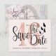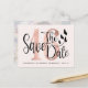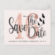 Moderna blommiga söta 16-årsdag sparar datum postkort. Design med typografi manus och nummer 16 i roséguld falsk folie. Anpassa med ditt foto och detaljer på baksidan.