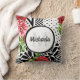Trendig Geometric Rand Mönster Red Foral Monogram Kudde