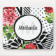 Med det här trendiget får du alla dina vänner uppmärksamhet med svart och vitt geometriskt mönster med diagonalt rand, polka dots och ett rött blommönster i chicen. Anpassa den här designen som är både modern och giftig genom att lägga till ditt namn och den monogrammade första till cirkelbrickan i mitten.
