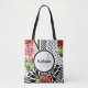 Trendig Geometric Rand Mönster Red Foral Monogram Tygkasse