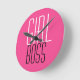 Trendig Girl Chef Typography White Black Shock ros Rund Klocka