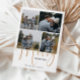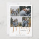 Den här platta dubblan i God jul har modern skriptcalligrafi och fem foton. Infoga dina favoritfoton, lägg till en personlig beröring med ditt eget hjärtliga meddelande och anpassa det efter dina önskemål. Foton efter prostooleh / Freepik.