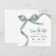 Meddela din stora dag med stil med våra examens-spara-datum-kort, som visar ett akvarell-grönt band knutet till en vacker rosett. Anpassa med lätthet och välj en digital nedladdning för en perfekt blandning av modernt och klassiskt. Lägg till dessa i din festliga brevpapper och se till att dina nära och kära är en del av ögonblicket.