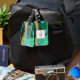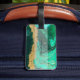 Trendig Grönt Guld Stone Marble Struktur, Monogram Bagagebricka