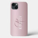 Girly Ro Guld Rosa Monogram Namn Cellfodral på rosa Shimmer-bakgrund. Det här moderna snyggtens mobiltelefon hjälper dig att uttrycka ditt unika stil. Anpassa med ditt eget namn och monogram.
