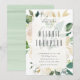 Trendig blommigt inbjudningskort för möhippan med vattenfärgspennor i skuggor av rosa och vitt med lush grey och guld accents. Med en halvgenomskinlig vit övertäckning som visar dina duschdetaljer i en vacker, trendig typografi. Perfekt för möhippor i vår eller sommarträdgård.
