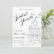 Trendiget stil illustrerade inbjudningskort för möhippan med en klocka champagne torn.