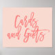 Enkelt stilren poster med skylttext "Kort och presenter" i korallfärg