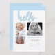 Ett blått band med vita polkadoter skapar en bakgrund för en stor "hej" och har tre fotofönster i detta snygga födelsemeddelande.<a href='http://www.freepik.com/free-vector/hello-illustration_1055182.htm'>Designad av Freepik</a>). <br/>() Kortet är enkelt att anpassa med text, teckensnitt, teckensnitt, färg, pappra formalternativ och val av sex pappra typer.<br/>() Inte exakt vad du är tittar för? Alla våra produkter kan vara designad anpassningsbar för att uppfylla dina behov utan kostnad för extra.<br/>() Kontakta oss helt enkelt på askcottonlamb@gmail.com<br/>() Samordna tillgängliga produkter: Fråga oss bara!