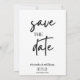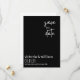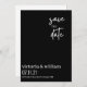 Sprida de underbara nyheterna om bröllop med det här moderna trendiget spara datumkortet, i snyggt svart och med elegant vit text