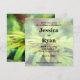 En bröllopsinbjudan i trendig design med grönt cannabisblad