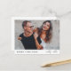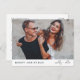 Ett snyggt helgdag-vykort med modern typografi "God jul" i mörk-skogens grönt och handskriven manustypografi för par namn på ren, enkel, minimalistisk vit bakgrund. Fotot, namn och hälsning kan enkelt anpassas för personligt bruk. En enkel, minimalistisk och contemporary julklapp som utmärker den här julhelgen! Bilden som visas är endast avsedd som illustration för att ersättas med ett eget foto. Platshållarbilden är av ett par i lycklig.