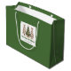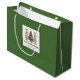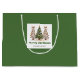 Minimalistisk vattenfärg julgran presentpåse med lekfullt leopardmönster i jordnära grönt och guld. Personalisera med ditt eget namn för en stilren julpresent.