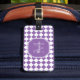 Gör en stänk med det här trendiget lila med ljus och vit geometrisk diamantkontrollerad bagagemärkning med mönster som monogram. Anpassa snyggtens design genom att lägga till ditt namn och inledande monogrammet.