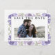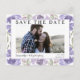 Fånga essensen av romantik och bohemsk charm med vårt "Boho Blommor" Spara datum-brevkort. Detta vackert tillverkade brevkort har en förtjusande kombination av lila akvarellblommande element och den speciella beröringen av ett älskat foto, vilket gör det till en souvenir som kommer att skattas av dina gäster. Anpassa med ditt eget unika foto och detaljer.