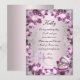 Vackra lila blommor på lila bakgrund. Varje bruds perfekta dag inkluderar hennes vänner. Vem litar du på att hålla ett tal och utföra uppgifter som att hjälpa dig välja brudtärnornas klänningar så att din bröllopsplan går smidigt? Om det är din ansvarsfulla syster, kusin, systerdotter eller din bästa vän, är denna "Vill du vara min brudtärna" - inbjudan ett roligt sätt att fråga. Personifiera kortet genom att ändra texten i de fält som finns på framsidan och baksidan. Du kan ändra typsnittsstil, storlek och färg, samt papperstyp och stil.