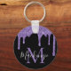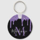 Trendig lila glitterdroppe med glansig monogram nyckelring
