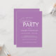 Förhöj din fest med vår trendiga lila typografi examensfest inbjudan! Denna examensfest inbjudan har minimalistisk vit och lila, vilket ger en trendig modern touch.