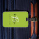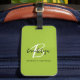 Den här elegant-personligens bagagetagg har ett monogram och första namn i det moderna svartvita skriptet på en trendig lime green bakgrund, med fullt i svart sans serif-teckensnitt nedanför.