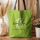 Den här elegantens personlig till väskan har ett monogram och första namn i det moderna svartvita skriptet på en trendig lime-grön bakgrund, med fullt namn nedan i svart sans serif-teckensnitt.