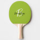 Den här pingpongpaddeln i eleganten har ett monogram och första namn i det moderna svartvita personligen på en trendig lime-grön bakgrund.