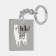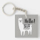 Hej där! Den här beundransvärda nyckelringen för Lama-skiss för svart och vitt trendig innehåller ord "Hej!" i svart skript. Skapa lite lamadrama i din tillbehörssamling med den här söta lamamanyckelringen.